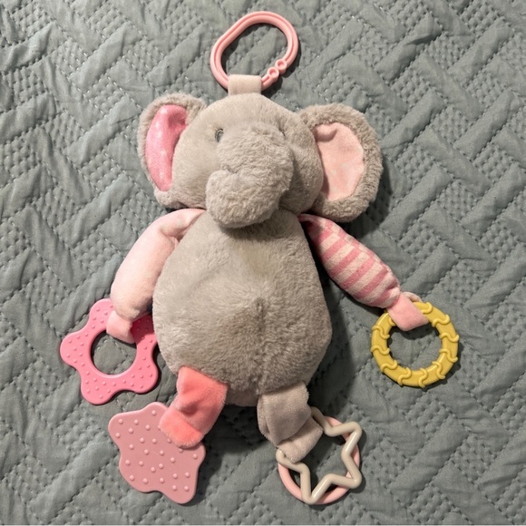 Kelly Baby Kellytoy 10” Elephant Plush Baby Rattle Toy pink Grey Soft