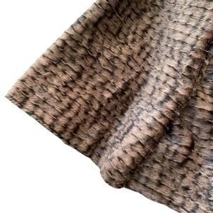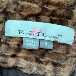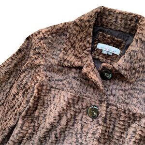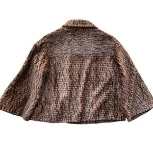 Kelly & Diane Cropped Faux Fur Animal Print Buttoned Jacket Brown Tan Size 8