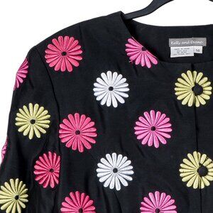 Kelly Diane Floral Embroidered Jacket 14 Womens Black Pink Buttons Silk Career