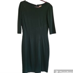 Daniel Cremieux Kelly Green Dress in size 10. This dress offers a perfect blend of sexiness and style, featuring flattering darts and a straight-line cut that beautifully enhances your curves. The modest yet captivating asymmetrical neckline adds a touch of uniqueness to this wardrobe essential. So versatile, wear it to work, church, or a fancy date night!