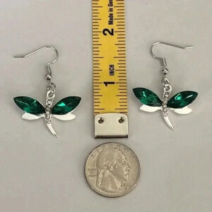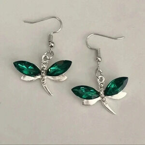 Kelly Green Crystal Silver Dragonfly Drop Earrings NWT