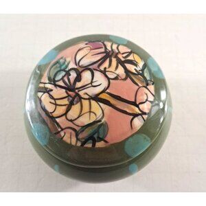 Kelly Jo Pottery Bowl W Lid Small Floral Cactus Southwestern Rare Pattern
