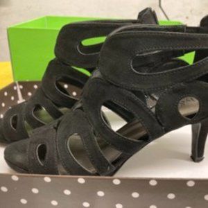 Kelly & Katie black caged peep toe sandal. Size 6.5.
