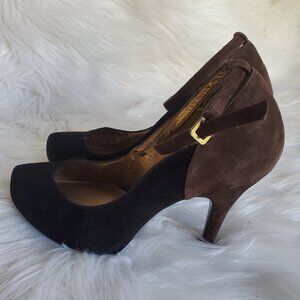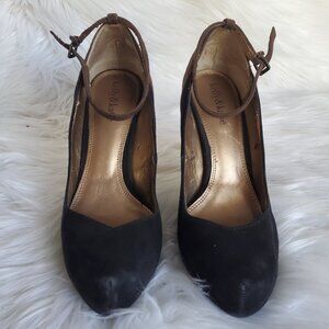 Kelly & Katie Black/Brown Suede Ankle Strap Heels SZ 8.5
