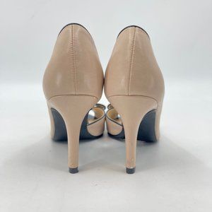 Kelly & Katie Cream & Black Stiletto Heels | Bow Accent