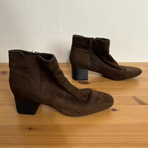 Kelly & Katie Dark Brown Heeled Booties Size 9 Faux Suede