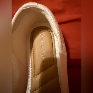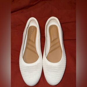 Kelly & Katie Emila Ballet Flat in white size 8. Features a knit textile upper, slip on feature, round toe, textile lining, lightly padded footbed and synthetic sole.