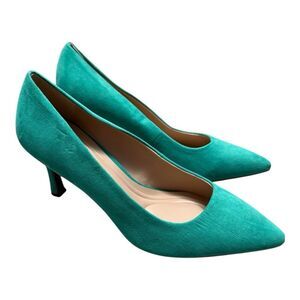 Kelly & Katie Emmie Pump Summer Green Fabric size 9.5 great shape smoke free dog friendly home zoom in to see any signs of wear and tear There's no need to mess with a classic! The Emmie pump from Kelly & Katie features a simple silhouette, a sleek pointed toe, and a slightly flared heel. Stylish, sophisticated, and timeless, just like you.