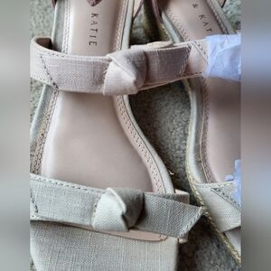 Kelly & Katie Espadrille Wedge Blush Pink & Tan Cheribeth Ankle strap Sandals Size 8.5 new without box. Zip Up back.