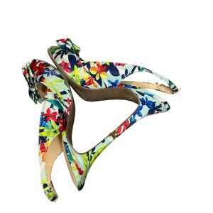 Kelly & Katie Floral Open Toe heels Size 10 colorful bow girly bright sling back