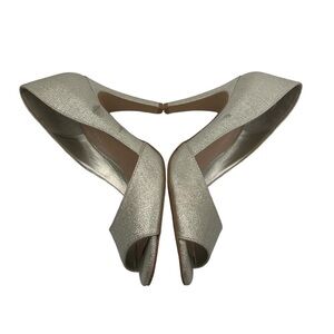 Kelly & Katie Gold Silver Sparkle Tibalt Peep Toe Heels Size 7 Women’s