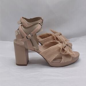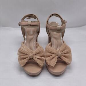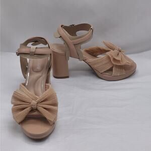 Kelly & Katie Heather Pleated Bow Platform Block Heel Sandals Chunky Shoes Women's Size 8.5M