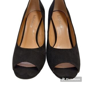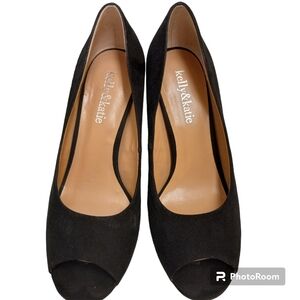 Kelly & Katie Heels Shoes Microsuede Peep Open Toes 3.5 inch Black Size 6 1/2