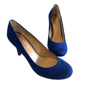 Kelly & Katie Isabella Cobalt Blue Suede Round Toe Stiletto Heels Slip On 9.5M