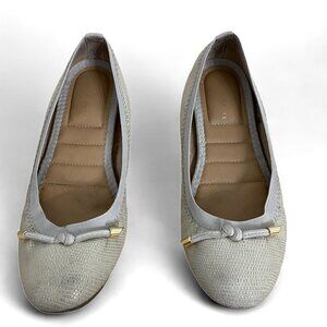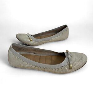 Kelly + Katie Kayla Taupe Metallic Lizard Embossed Leather Slip On Comfort Ballet Flats Shoes, Size 7
