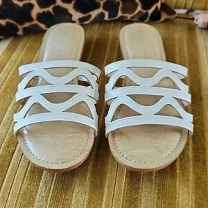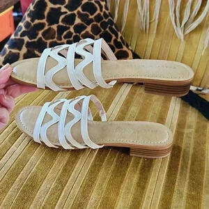 Kelly & Katie Kenzy white cushion slide on sandals low block heel size 8
