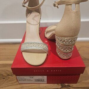 Kelly & Katie Natural/Metallic Heeled Sandals NEW, Size 8.5