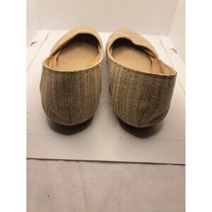 Designed in a nude gold metallic tone with subtle sparkle, they feature a lightweight feel, flexible sole, and slip-on comfort perfect for day-to-night wear. Fair condition.
