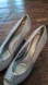 Condition: Good. They have been worn a couple of times, mostly indoors. There is a gel pad at the heel that can be removed if you wish. Excellent heel, I just have too many shoes.