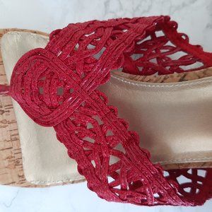 Kelly & Katie Red Thong Sandals with Medium Cork Heel, Size 10 (US)