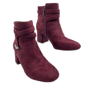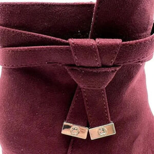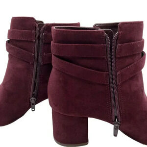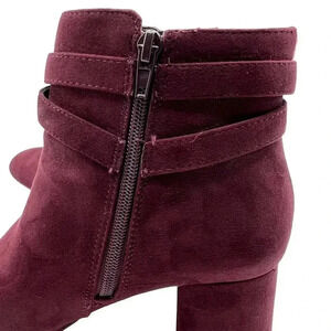 Kelly & Katie ankle bootie Burgundy ankle bootie Faux suede bootie Block heel bootie Zipper ankle bootie Size 8W bootie Women's fashion Women's footwear Stylish ankle bootie Chic ankle bootie Kelly & Katie footwearTakiso bootie Burgundy footwear