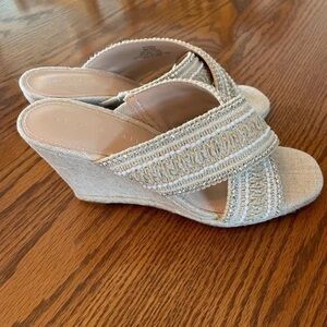 Stylish woven mules with crisscross design. Ideal for casual and chic looks.