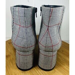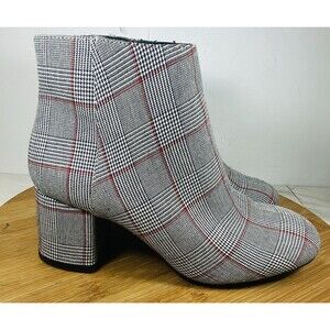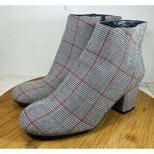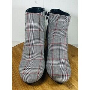 Kelly & Katie Thessa Plaid Ankle Booties Shoes Size 7M Block Heel Side Zip Gray