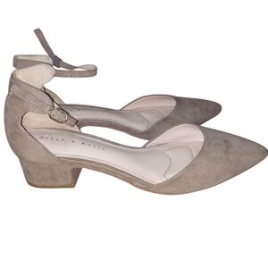 Kelly & Katie Women's Tan Ankle Strap Pointed Toe Faux Suede Block Heels