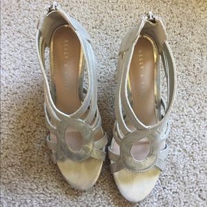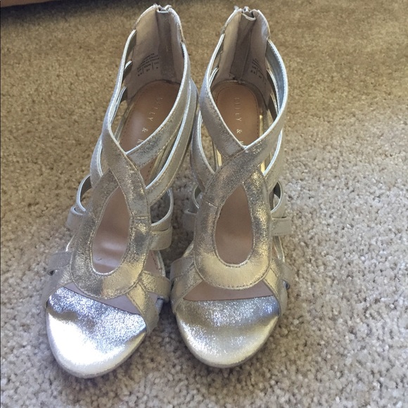 Like new high heels. They are a gold/silver color and were worn in a wedding I was in. Very elegant and nice to wear just don't need them anymore!
