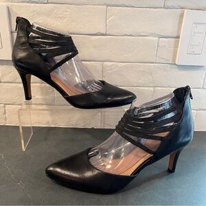 Kelly & Katie sz 9.5 black leather strappy pointy toe heels