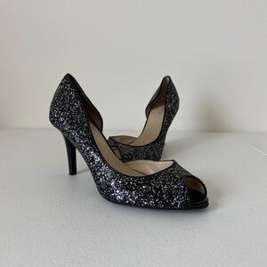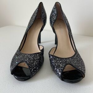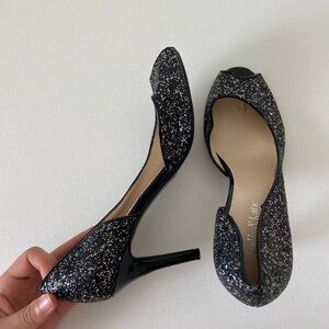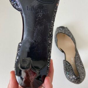 Women’s Kelly & Katie heels. Heels are decorated with black & silver glitter—it looks like the silver glitter reflects the color blue sometimes when the light hits it. Size 8.5. Smoke free home!