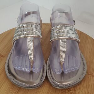 Kelly & Katie Silvya Metallic Crystal Thong Sandals Slingback Ankle Strap Size 8