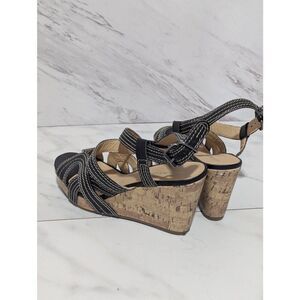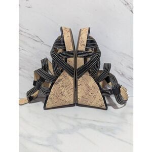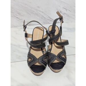 Kelly & Katie Women's Black Leather & White Stitch Cork Wedge Sandals Size 8.5