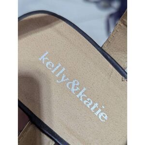 These Kelly & Katie women's wedge sandals feature a stylish black leather upper with contrasting white stitching for a chic, modern look. The cork wedge heel adds a natural touch while providing comfort and stability for all-day wear. Designed with an open-toe style, these sandals are perfect for warm weather and versatile enough for casual or dressy occasions. The cushioned insole enhances comfort, making them a go-to choice for effortless style. Available in size 8.5, they’re a must-have addition to any summer wardrobe.