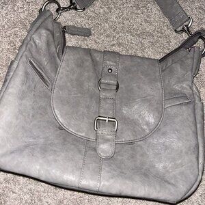 Kelly Moore Gray Leather Medium Size Spacious Hobo Camera Shoulder Bag Purse