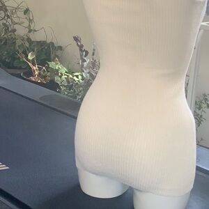 Stretchy ivory colored tee with little strands of gold flecks.