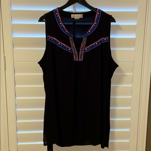 Kelly Renee Black Embroidered Tunic Sleeveless Top