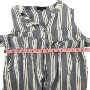 Keywords: striped romper, sleeveless romper, drawstring waist, casual romper, linen blend, summer romper, beach romper, vacation outfit, button down romper, womens romper, plus size romper, kelly renee, striped jumpsuit, blue and white