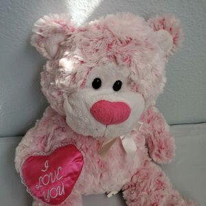 Kelly Toy USA Pink Plush Bear 17"x13" with I Love You Heart Pillow