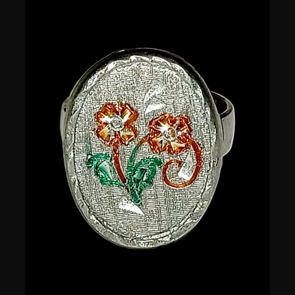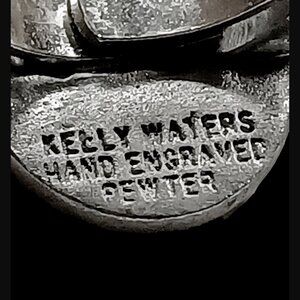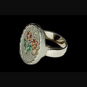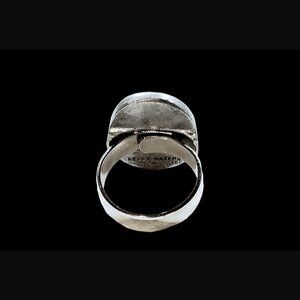 Kelly Waters Hand Engraved Pewter Adjustable Ring Resting Size 6.5 Floral Design