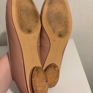 These are used Kelly and Katie ballerina flats. They are in good condition. They have a bow and they are a pinkish nude color. As you can see there is a scuff at the tip of the shoe and the bottoms are dirty. They will be cleaned better before shipping.