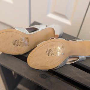 Pretty much new, but without box. Bought for one event, but we all kicked them off at the door. ;) You can feel like Cinderella in there bedazzled sparkly heels, and silver is great for taking even a simple dress or pantsuit to a whole new level. Perfect heel height (I believe it was labeled as 3 1/2" inches) to make your legs look great, but still be comfortable.