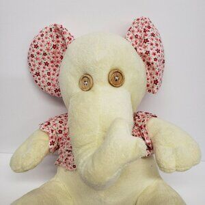 Kellytoy 10" Cream Elephant Button Eyes Floral Print Ears Top Feet Plush.