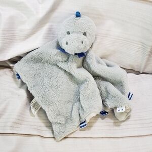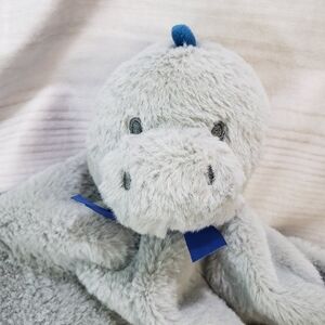 Kellytoy Baby Gray Blue Dinosaur Plush Lovey Mini Security Blanket Rattle Ribbon