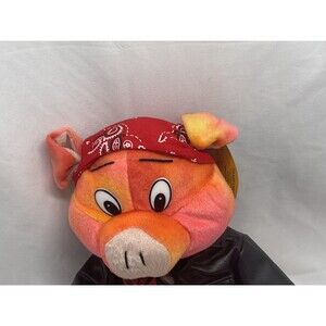 Kellytoy Biker Hog Live To Ride 11" Pig Red Bandana Black Jacket Stuffed Animal Toy RARE. Measurements photographed. See pictures, please. Ships quickly (1006C)