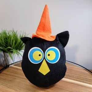 Kellytoy Black Owl plush orange hat Halloween soft squishy