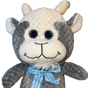 Stuffed Animal Toy Plush Goat Medium Gray with Blue Bow Kellytoy