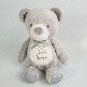 Kellytoy My First Teddy Bear Plush Gray Grey 10" Rattle Lovey Stuffed Animal Toy