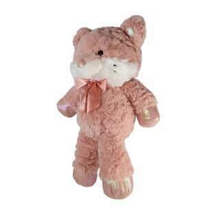 Kellytoy Pink Cat Plush 14" Stuffed Animal 2020 Satin Bow Shiny Nose Ears Feet
