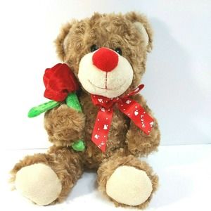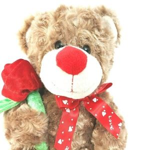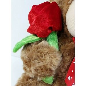 Kellytoy Valentine Brown Teddy Bear Rose Love Bow 12" Plush Stuffed Animal Toy